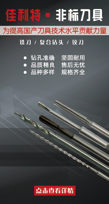 鎮江佳利特刀具有限公司是制造非標準特種刀具的企業。本公司主要生產高速鋼和硬質合金特殊刀具。產品使用于機械、電子、汽車制造、塑膠、木制品等行業。公司生產的復合孔加工刀具、銑削刀具和成型銑刀等刀具。成為廣大用戶提高生產效能的途徑,深受用戶好評。公司作為制造非標特種刀具的企業我們將致力于刀具的國產化,為提高國產刀具技術水平貢獻力量。無論您需要何種刀具,我們將以合理的價格為您提供好的切削刀具和完善的技術服務。非標刀具式樣繁多,如無圖樣我們將竭力提供設計服務,并快速準確地交出滿意的刀具。[ 其它+ ]